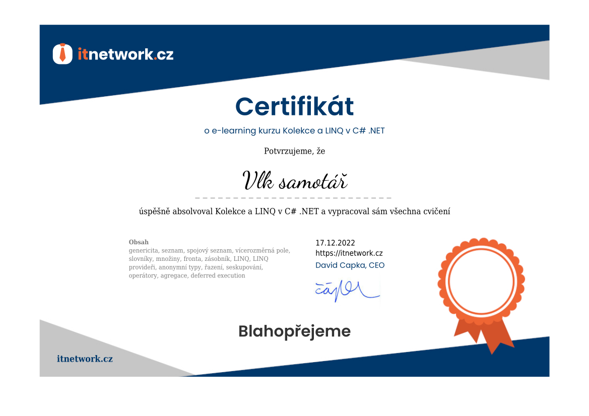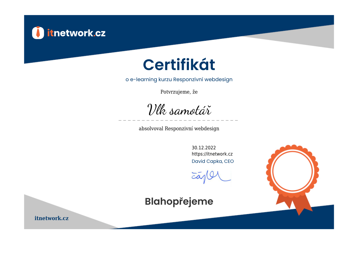 V galerii si můžete prohlédnout všechny certifikáty, které jsem obdržel za absolvování online kurzů na itnetwork.cz.